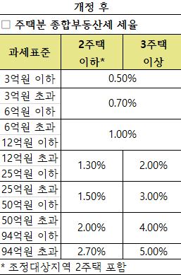 즉, 과세표준 12억 이하는 주택이 1개건 2개건 3개 이상이건 똑같이 때립니다.