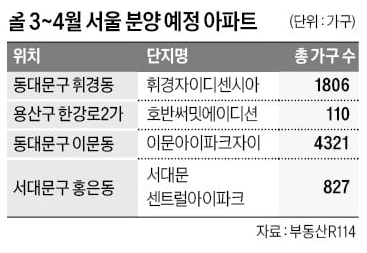 그럼 당장 3-4월 서울에 예정된 분양 아파트를 볼까요? 용산을 제외하곤 추첨제 물량이 어느정도 높네요.